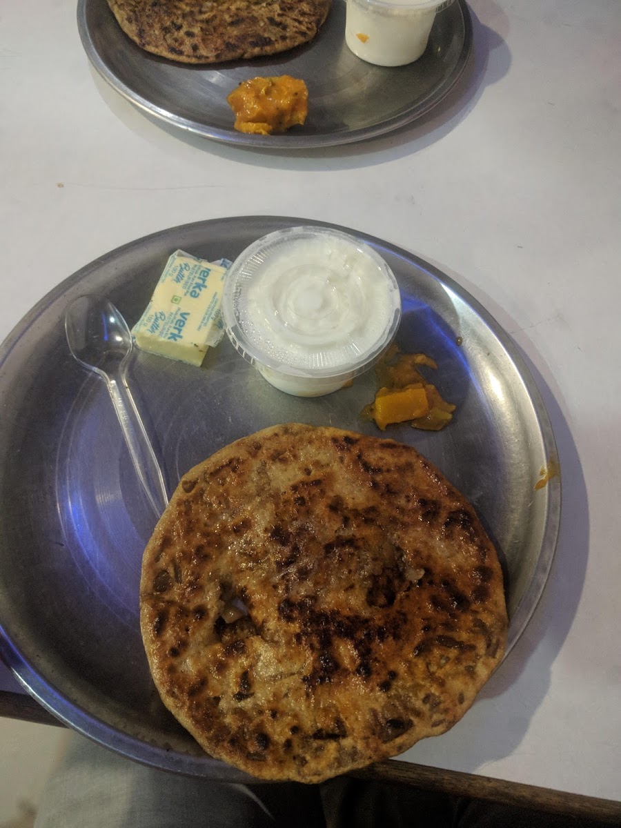 It's truly yummiest paranthas I ever had. I visited here first time here on the recommendation of my husband . They said it is the famous parantha shop in old Ludhiana Chaura Bazar .Pandit ji di hatti/Pandit ji paranthe vale. We had aloo payaz parantha, Gobhi payaz parantha, paneer payaz parantha . And I must say it is bestest parantha shop with quality, Stuffing , taste, hygiene and the staff is very kind . Aloo payaz/gobhi payaz /mix parantha - Rs 60/-Each and paneer parantha - Rs70/- each and yes they will give curd+ butter along with paranthas but curd and butter they have separate charges (these charges not included in parantha charges). Amazing taste Must visit Pandit ji Di hatti for yummiest breakfast/lunch/dinner whenever in Ludhiana PunjabYou will get full stuffing all over in the paranthas .
